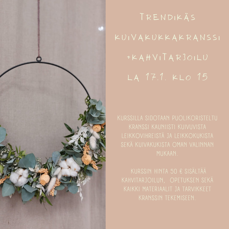 17.1.2026 | Trendikäs kuivakukkakranssi + kahvitarjoilu